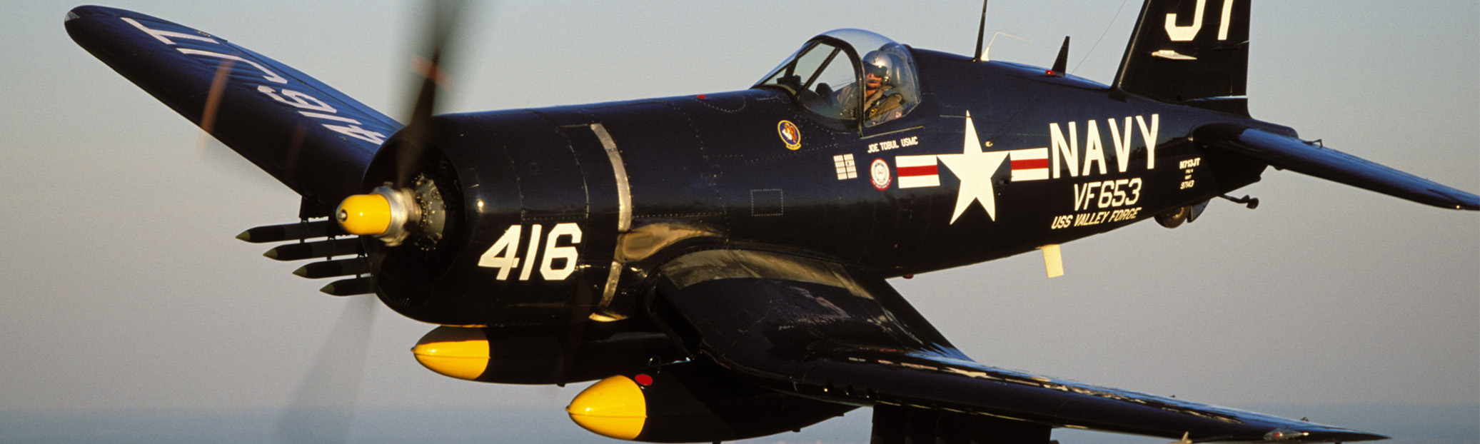 Armament- (6) .50 caliber machine guns with 2,400 rounds (8) 5" HVAR (high velocity aircraft rockets) (2) 1,000 lbs bombs or Napalm or 15" Tiny Tim rockets